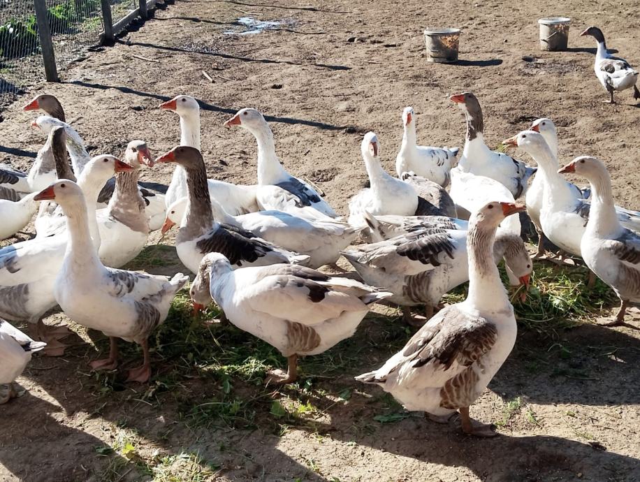 Na prodaju su domaće guske, hranjene žitom i ispašom. Cijena za žive je 10 eur/kg, a za obrađene 12 eur/kg.