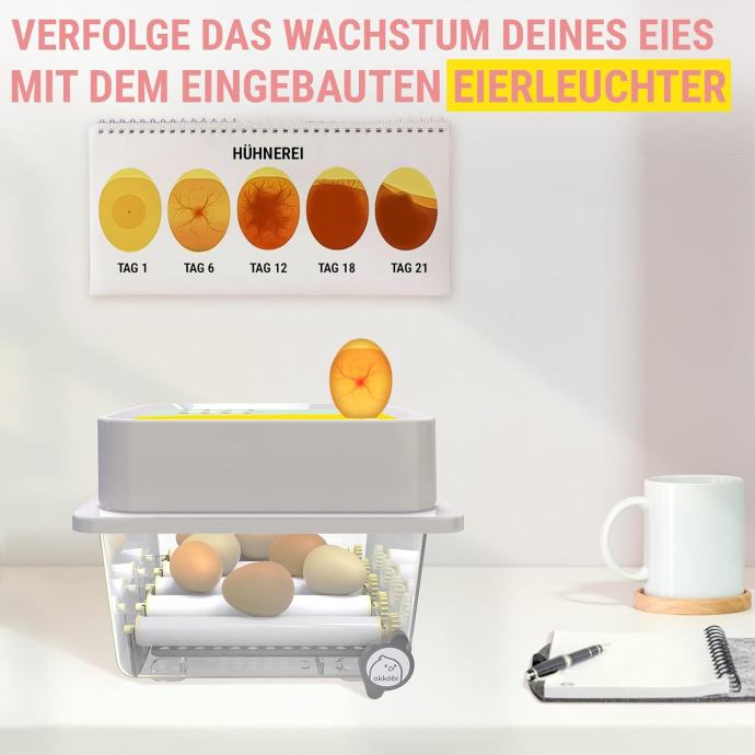 Automatska lopatica za jaja + integrirani delikator za jaja. Više ne morate ručno okretati svoja jaja svakih 1,5 sati! OBI-12 to radi automatski za vas, što značajno povećava vašu stopu izleganja. Integrirani okretač jaja omogućava vam da pratite razvoj vaših jaja.