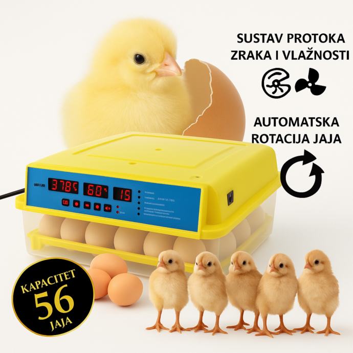 Veliki kapacitet: Inkubira do 56 jaja, idealan za velike i male uzgajivače.