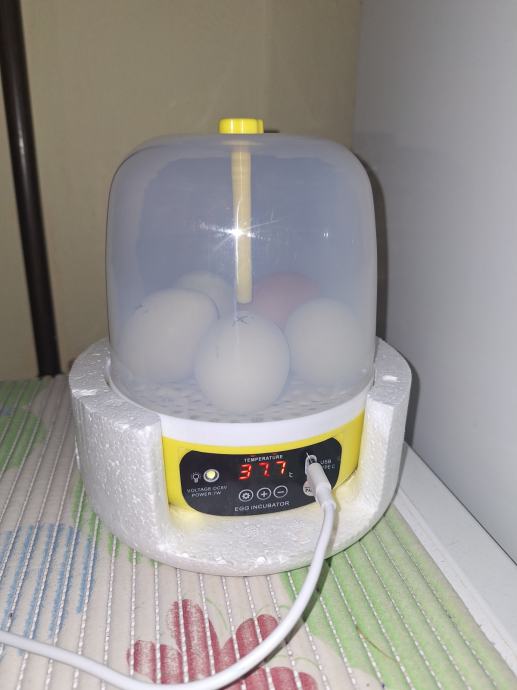 Prodajem inkubator za jaja do 5 kokošjih ili nešto više jaja prepelice. Inkubator ima posudu za vodu i postolje za okretat jaja automatski ali i može bez toga. Inkubator radi na punjač od mobitela c ili obični usb utor. Cijena nije fiksa.