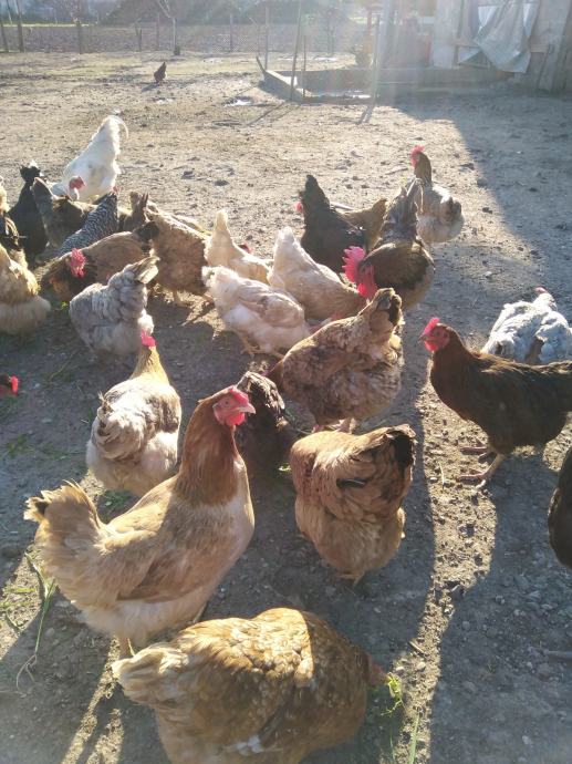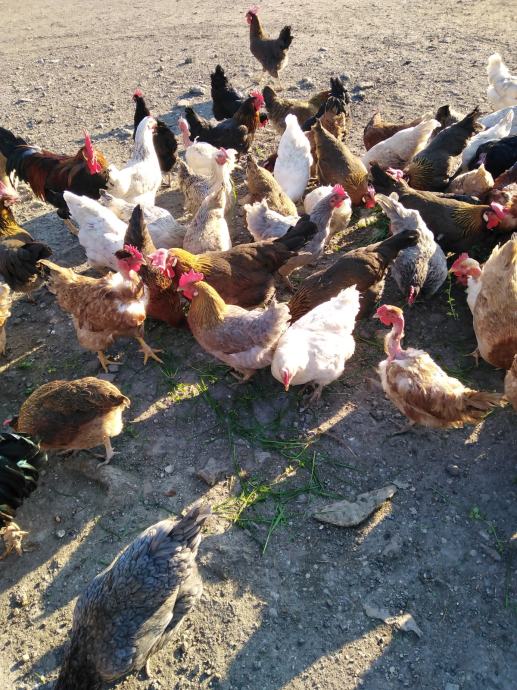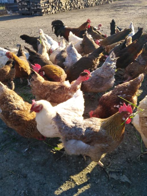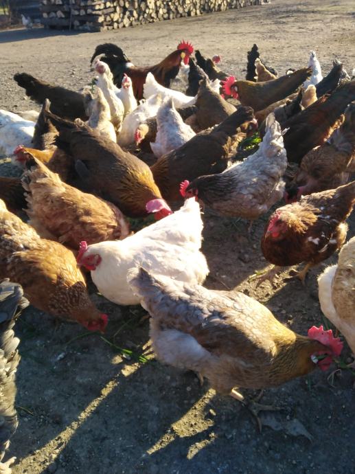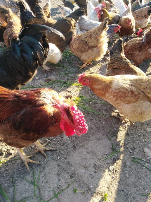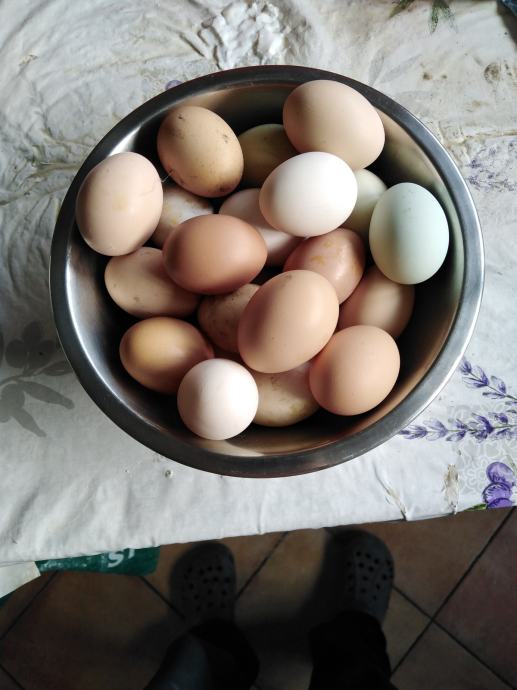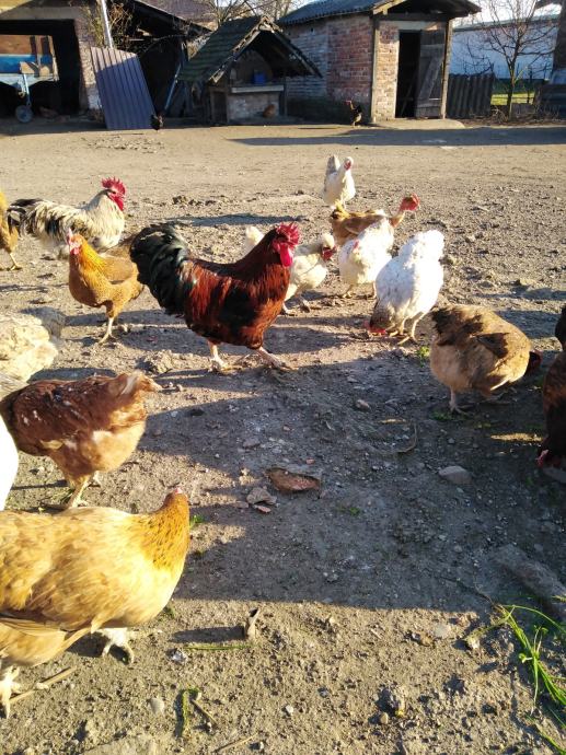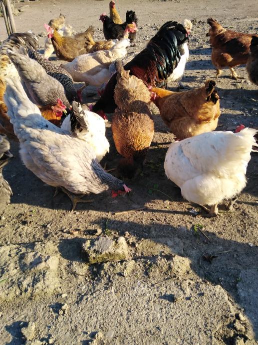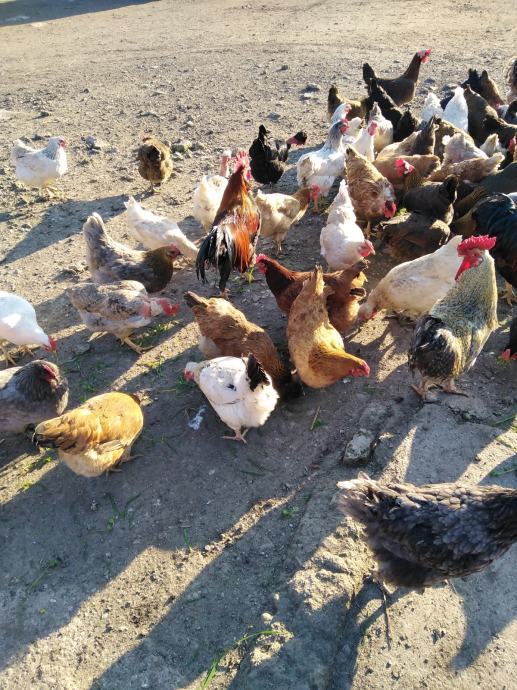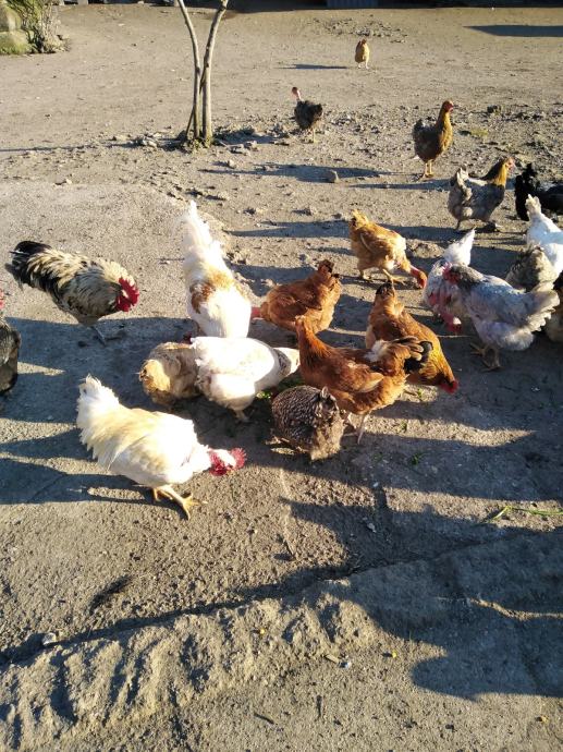 Prodaju se jaja za nasad domaćih kokoši sa slika, u jatu ima i nešto kokoši i pijevaca jarebičaste talijanke, ima kukmastih i golovratih domaćih kokoši i pijevaca u svim bojama, cijena jednog jajeta obične boje ljuske je 50 centi, cijena jednog jajeta zelene boje ljuske je 60 centi i cijena jednog jajeta bijele boje ljuske od jarebičaste talijanke je 60 centi, informacije na broj 0989325468