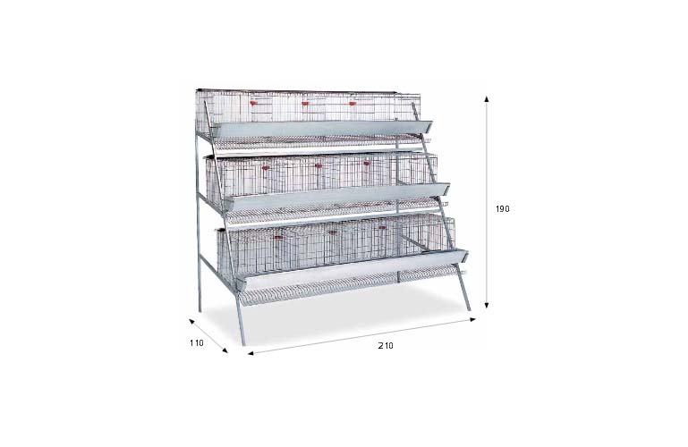 Kavez za koke nesilice sa ispustom za jaja , tepsijom za izmet (2komada) , hranilicom i avtomatskom pojilicom , kapaciteta 12 boksova na tri kata za 48-60 komada