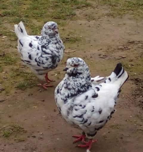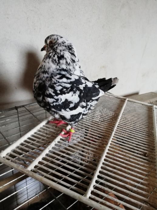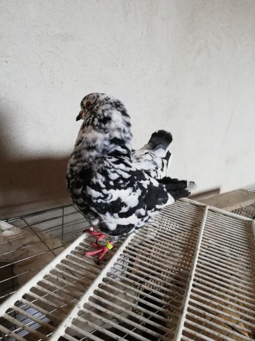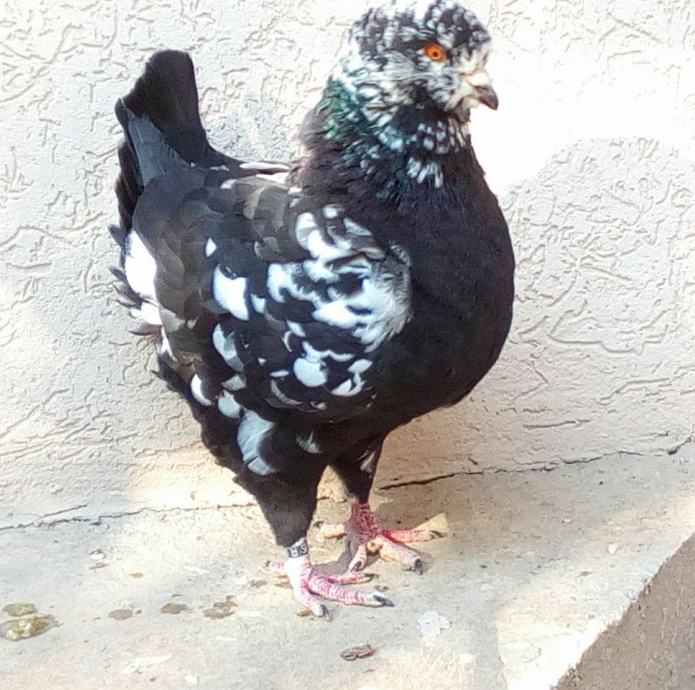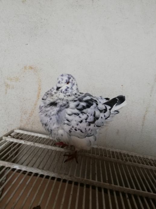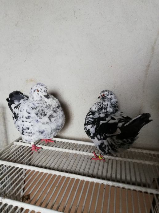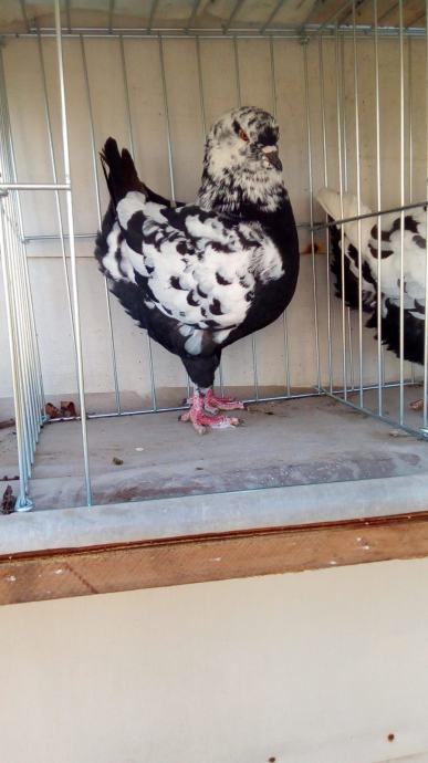 KING AMERIČKI - 5 GOLUBOVA ( matićni par 2x I 3 mlada 2 M + 3 Ž ) CRNO BIJELO ŠPRICANE BOJE PRODAJEM