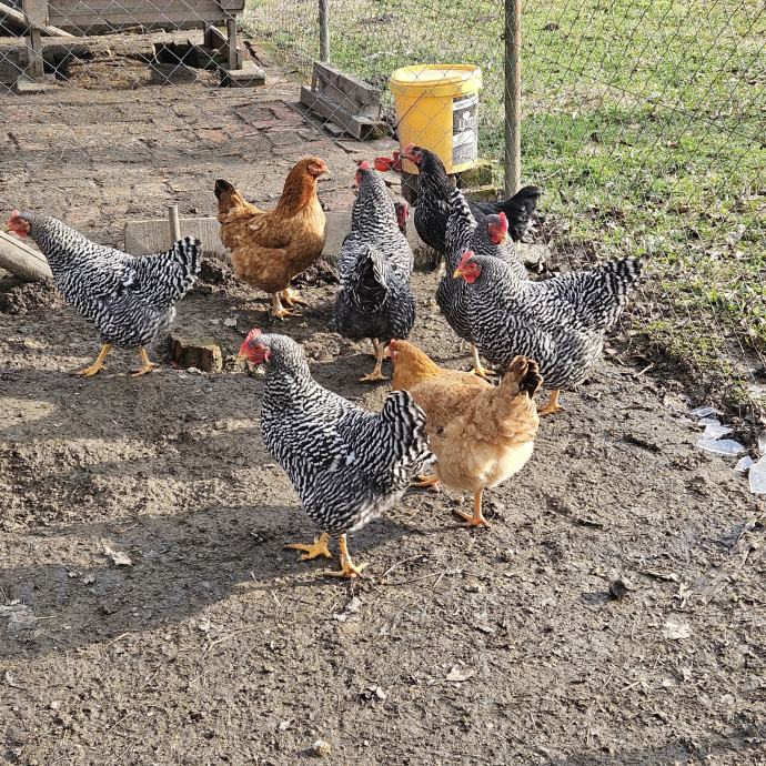 10 domaćih kokoši.Starost od 8-11 mjeseci.Prodaja samo u kompletu.Cijena po komadu 10 eura.