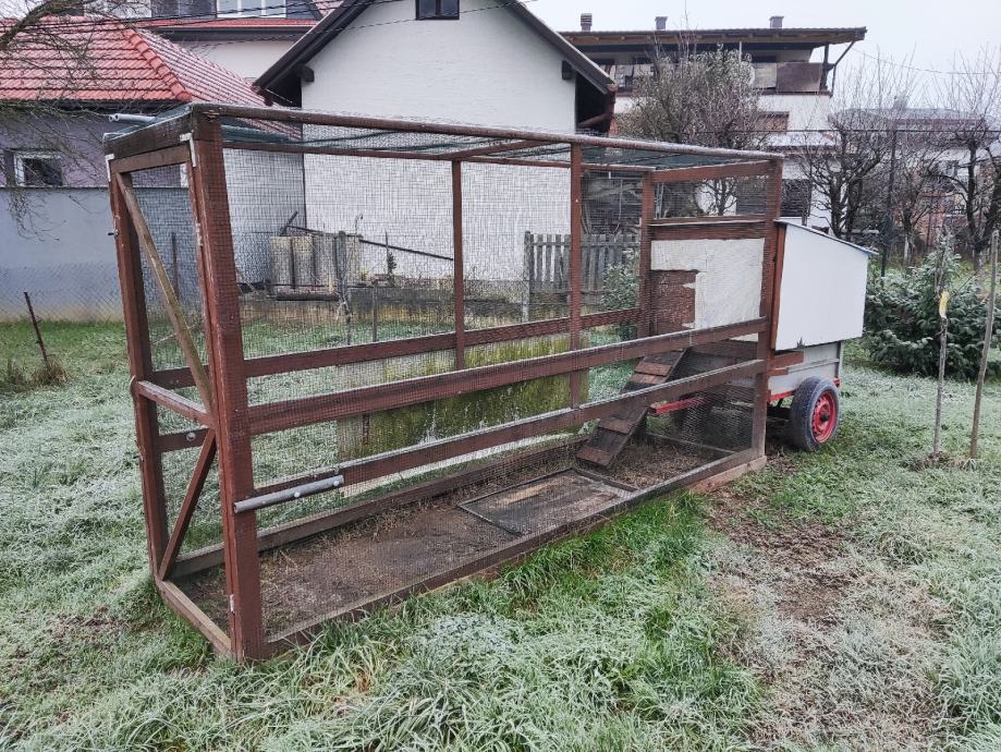 Prodajem mobilni kokošinjac napravljen na prikolici od freze. Vrlo lako se premješta sa lokacije na lokaciju , tako da kokoši uvijek budu na svježoj travi i da nose sretna jaja.