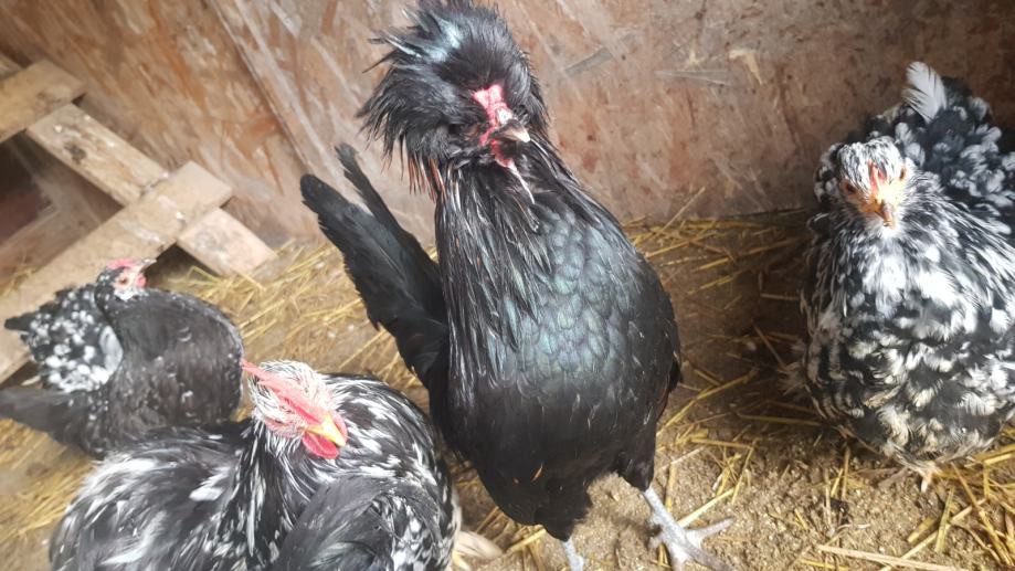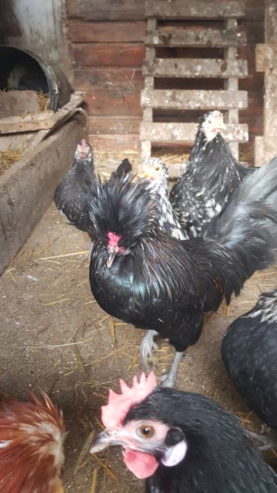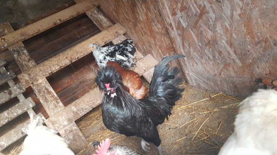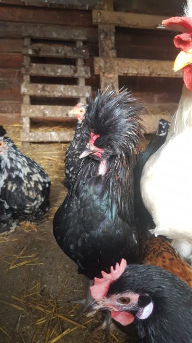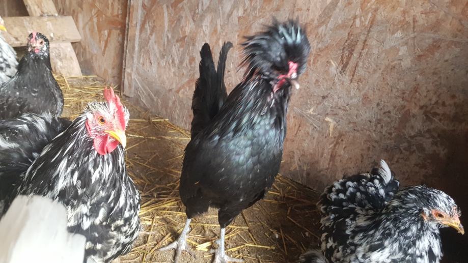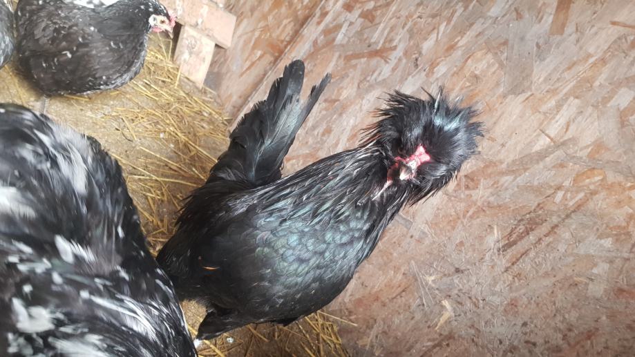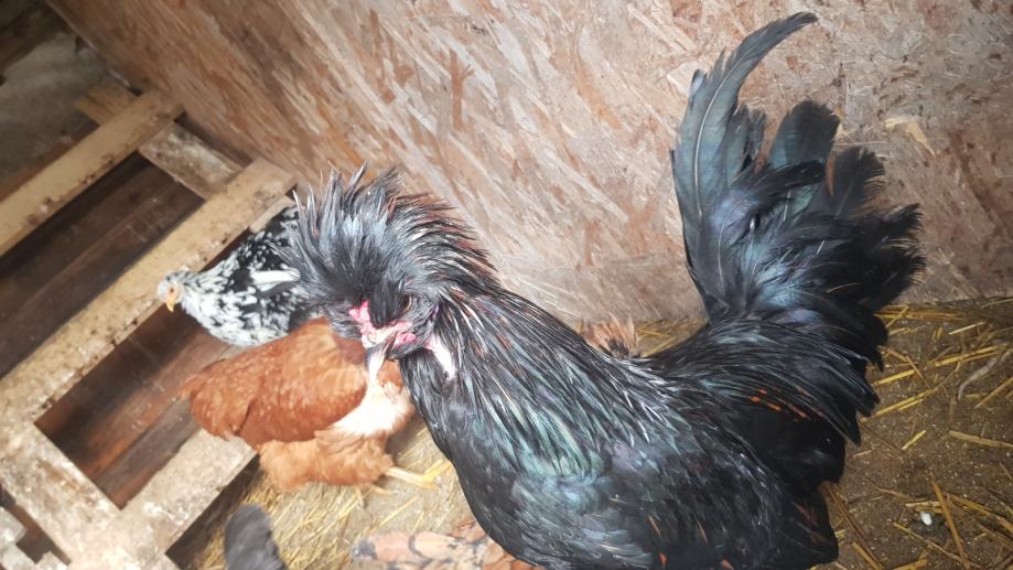 Visak mladi prošlogodišnji Padovanski pijetlic .crni sa malo smeđe boje . Aktivan .zdrav moguća dostava kamionom na neke lokacije postati upit
