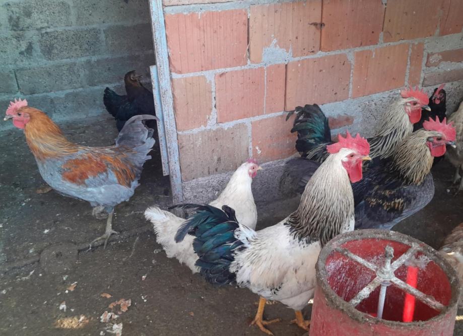 7 komada mladih pjetlova starosti 7 mjeseci. pasmina Australorp i Sussex i mješanci. 20 eura komad.