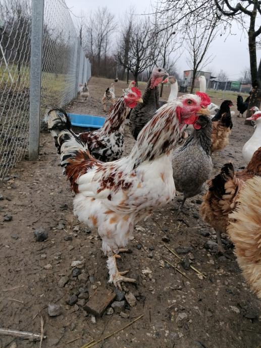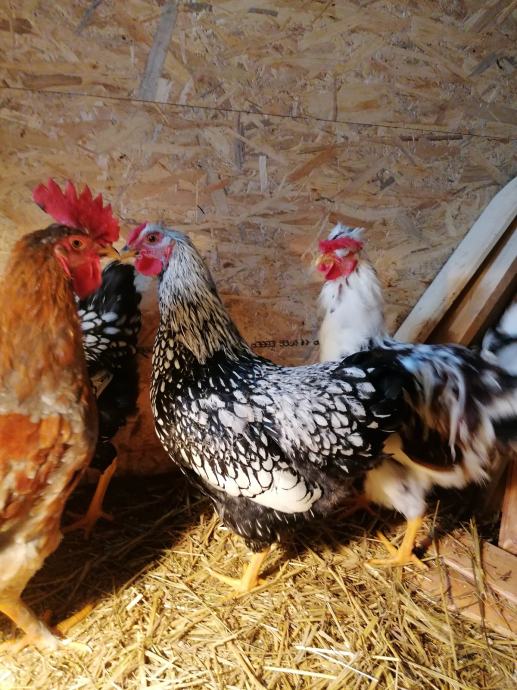 Pijevci stari 6 mjesrci, miješani domaći šareni i srebrna wiandotta.