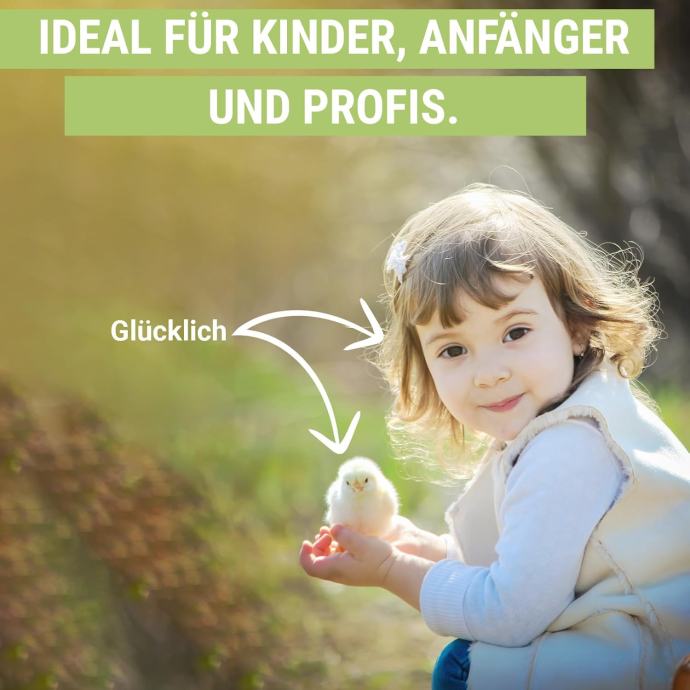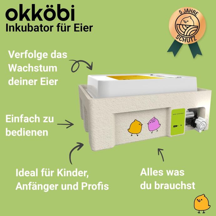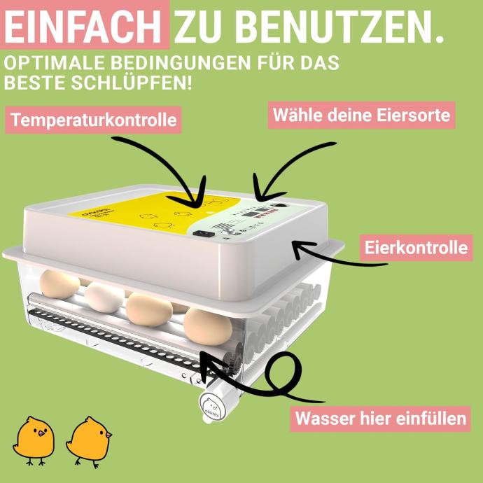 Inkubator je jednostavan za korištenje i ne zahtijeva montažu; idealan je uređaj za djecu i početnike. OBI-36 dolazi s jednostavnim uputama za uporabu i digitalnim zaslonom koji precizno prikazuje temperaturu i vlažnost. Sve što vam je potrebno za sljedeći uzgoj uključeno je u isporuku: sve što trebate učiniti je nabaviti jaja!