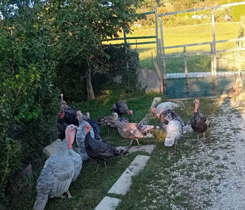 Hranjene domaćom hranom na velikm dvorištu.