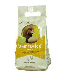 VAMAKS® za JAJA sadrži sve neophodne minerale i vitamine, te metionin kao esencijalnu aminokiselinu, koji uz osnovni obrok podupiru proizvodnju jaja, vitalnost nesilica za rast i formiranje kostiju. Sprječava deformiranje ljuske jaja te daje žumanjku pojačanu boju u svih nesilica. Metionin pozitivno djeluje na nesivost i operjavanje peradi.