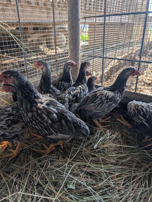 Prodajem vijandote, mlađe kokoši karakterističnog crno-bijelog šarenog perja. Cijena se odnosi na komad.