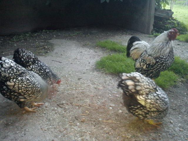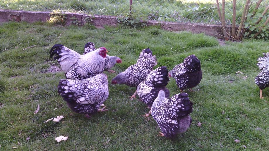 Pijetao i pet kokica (ili po želji) srebrne patuljaste wyandote poradi manjka prostora za držanje prodajem. I pjetao i koke su prošlogodišnje (leženi 2014,), u izvrsnoj su kondiciji i svakodnevno nose jaja. Oplođenost jaja od navedenog jata bila je cca 90%.