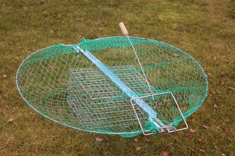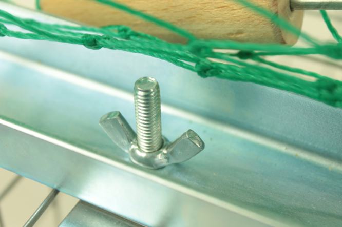 Kostur s polietilenskom mrežom (veličina oka 2,5 x 2,5 cm) stabilno se pričvršćuje pomoću 4 nosača koji su uključeni u set. Metalni klin drži prsten za držanje.