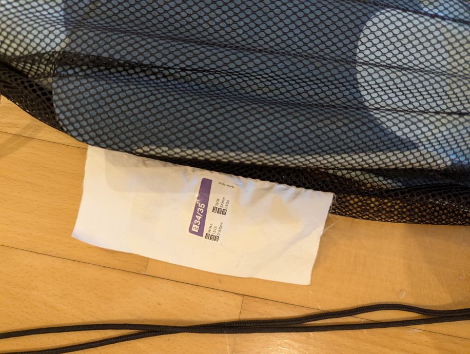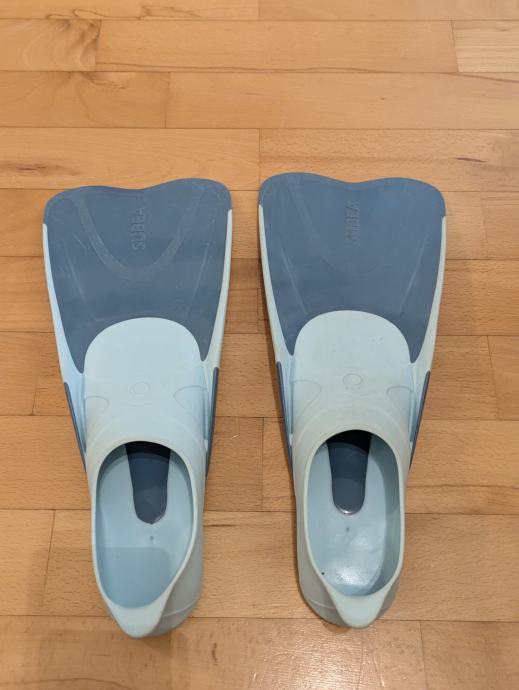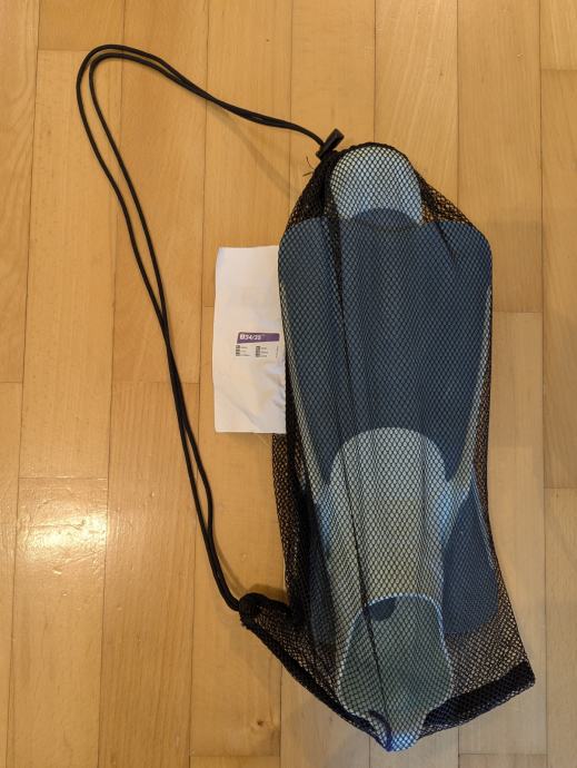 Dječje peraje u original mrezastoj torbici. Deklarirano broj 34/35. Prsti su otvoreni, peta zatvorena, ide i za 36 bez problema. Lagano se obuvaju, kratki model, moze za plivanje i ronjenje. Koristene, ispravne.