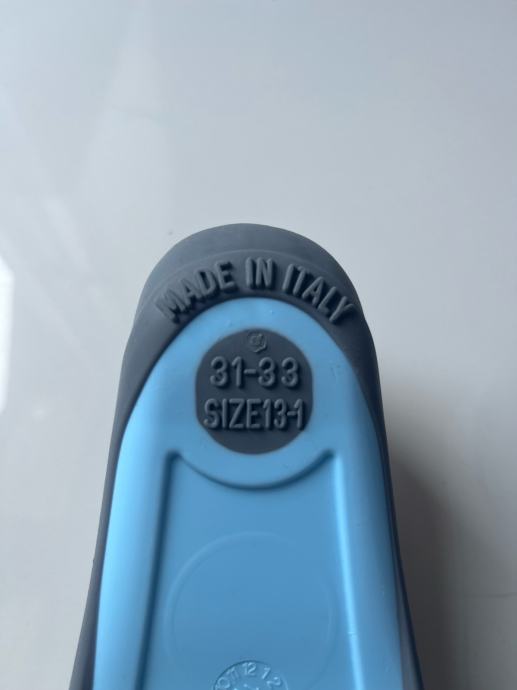 Dječje peraje br. 31-33 za plivanje , proizvedene u Italiji . Posebno dizajnirane za učenje tehnika plivanja male djece .