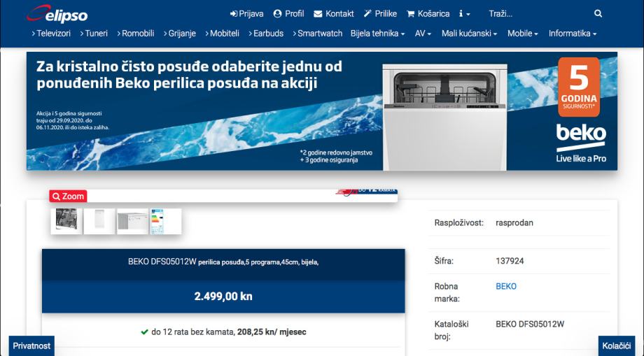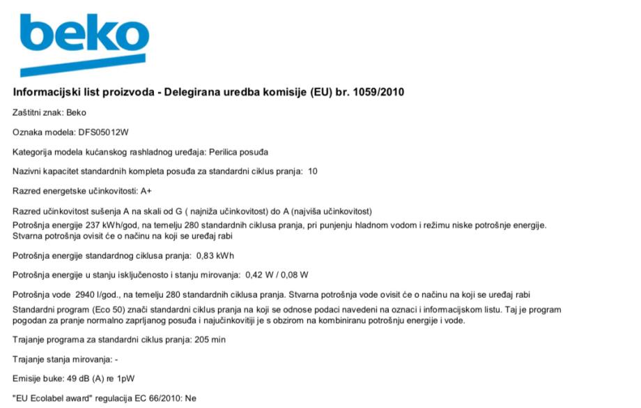 Prodaje se perilica posuđa BEKO DFS05012W perilica posuđa, 5 programa, 45cm, bijele boje. Korištena je u malom uredu (5 zaposlenih) za pranje čaša i šalica. Ured se zatvorio pa se zato i prodaje ova izvanredna mašina koja je kao nova i nema tragova korištenja. Plačena je 2500 kuna u Elipsu.