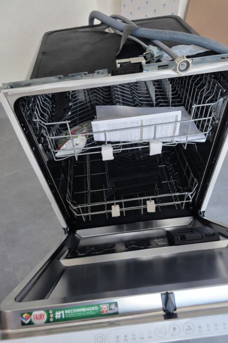 Ugradbena perilica posuđa (širina 60,13 kompleta suđa). Nova samo skinuta iz folije, nikad korištena ni ugrađivana, kupljena prije 6mj. Ne odgovara nam širina pa ju nemožemo ugraditi. Ima wifi.