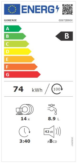 Potrošnja energije na 100 ciklusa: 74 kWh