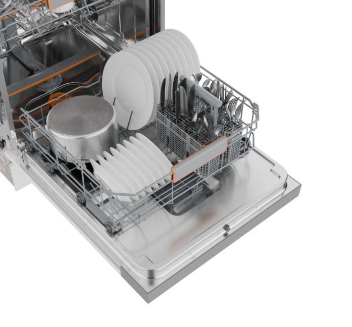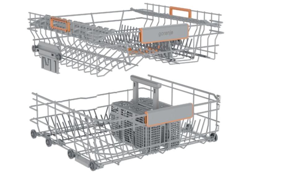 Gornja košara: Ručka s plastičnim logotipom, 4 držača za šalice, Široki držač za noževe, Fiksni držač za čaše, Sklopivi/djeljivi lijevi držač za čaše, Desna sklopiva polica CupHolder za čaše, Lijeva sklopiva polica CupHolder za čaše, Ručka, Široka mreža, Sklopivi redovi igala