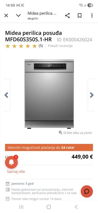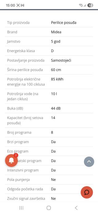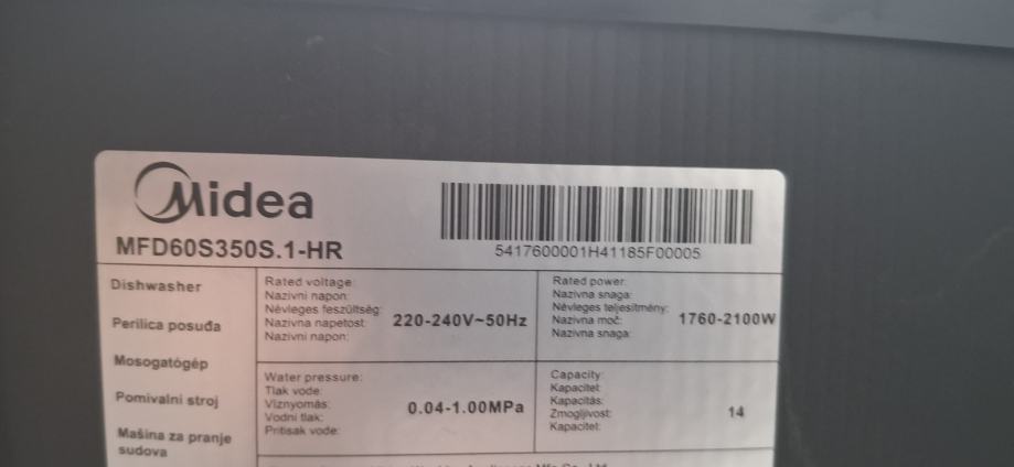 Prodajem perilicu posuđa Midea,jako malo radila garancija još 48 mjeseci prodajemo zbog promjene kuhinje i kupovine ugradbe perilice.Perilica ima jako puno funkcija i programa među ostalima i automatslo otvaranje vrata po završetku programa,zvučni signal,svjetlo u unutrašnjosti.