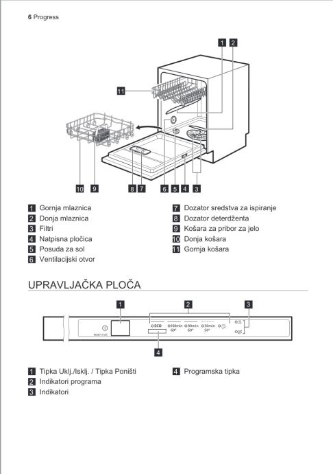 Programi: 30 minuta 50°, 90 minuta 60°, Eco 50°C, Intenzivno 60°, Predispiranje
