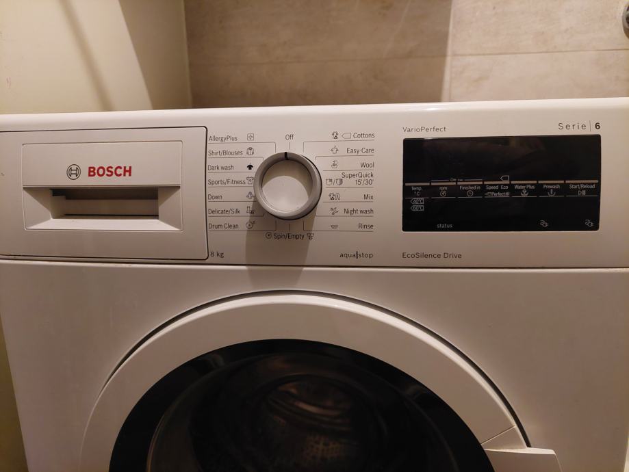 Perilica rublja Serie 6, 8 kg proizvedena u Njemačkoj, kupljena 2016 godine. Službena dijagnoza ovlaštenog Bosch servisa je kvar na križu bubnja ili opruzi bubnja što iziskuje zamjenu cijele kadice i bubnja zajedno. Ostali dijelovi uređaja ispravni (elektronika - programi svi rade, motor ispravan, grijač promijenjen prije 3 mjeseca). S desne strane javila se korozija zbog blizine tuš kade.