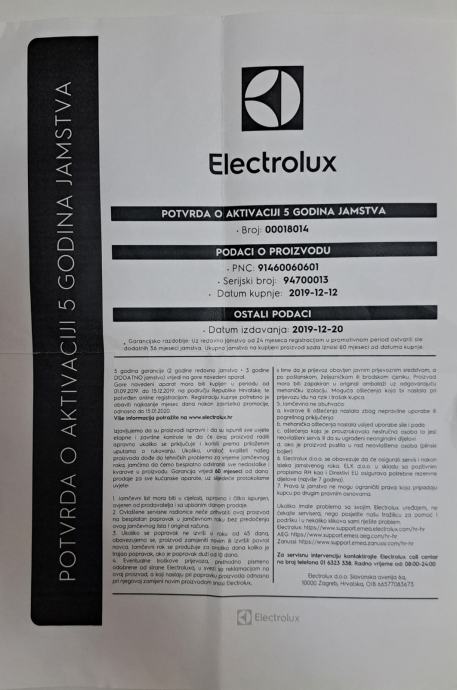 Razlog prodaje: zbog potrebe zamjene nosača perilica je bila cca tjedan dana van pogona u nezgodno vrijeme (mala djeca, vikend) pa je bilo potrebno kupiti zamjensku perilicu. Nosač je zamjenjen pod garancijom i perilica je bez greške. Nažalost, sada nepotrebna.