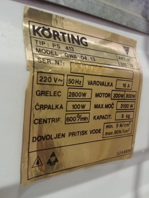 Korting, tip: PS 413, potpuno ispravna perilica rublja, predviđena za 5 kg rublja i max 600 o/ min, moguća proba prije kupnje. Dimenzija 60x60x85cm. Pogledajte i moje druge oglase.Zvati isključivo 091 5341 720.