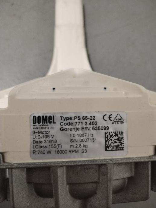 Potpuno ispravan elektromotor inverter Izvađen iz Gorenje WA844 Perilice. Marka Domel