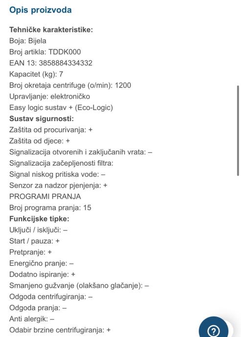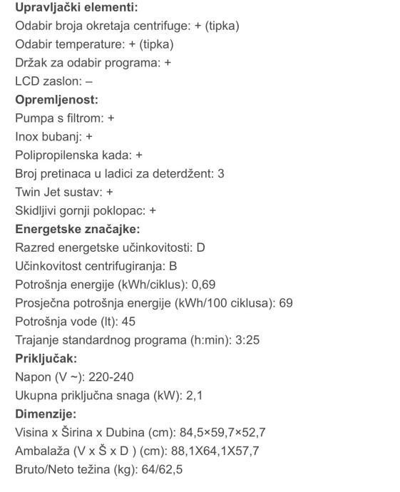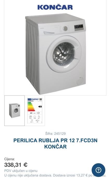 Prodajemo Končar perilicu rublja, služili smo se s njom možda mjesec dana i od onda stoji (zamijenili je drugom).