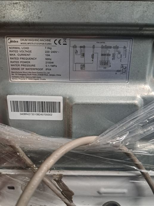 Midea perilica rublja, model mfe70 jt1212, punjenje odozgo, 7kg, 1200 okretaja. Pod garancijom, iz 8/2021, garancija 5g. Potpuno ispravna, sada je višak.