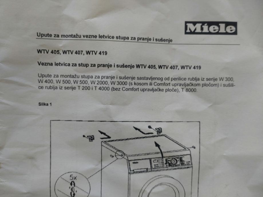 Vezni element s izvlačnom pločom za povezivanje perilice i sušilica Miele.
