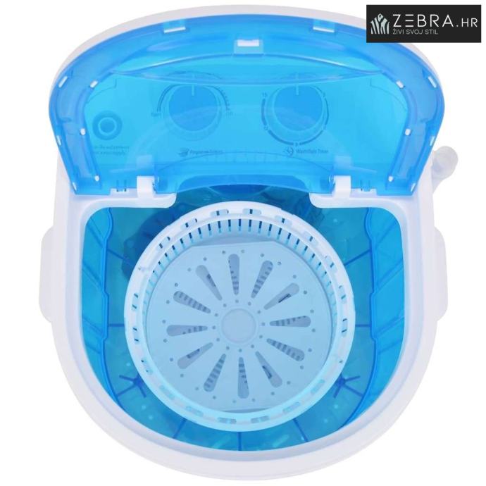 Ova perilica rublja ima kapacitet pranja od 2,6 kg i funkciju centrifuge 2,6 kg. Ugrađeni 15-minutni mjerač vremena automatski će isključiti perilicu nakon svakog ciklusa ispiranja i centrifugiranja. Zahvaljujući praktičnoj ručki za nošenje, ova mini perilica rublja jednostavno se prenosi i savršena je za uporabu na putovanjima ili kampiranju.