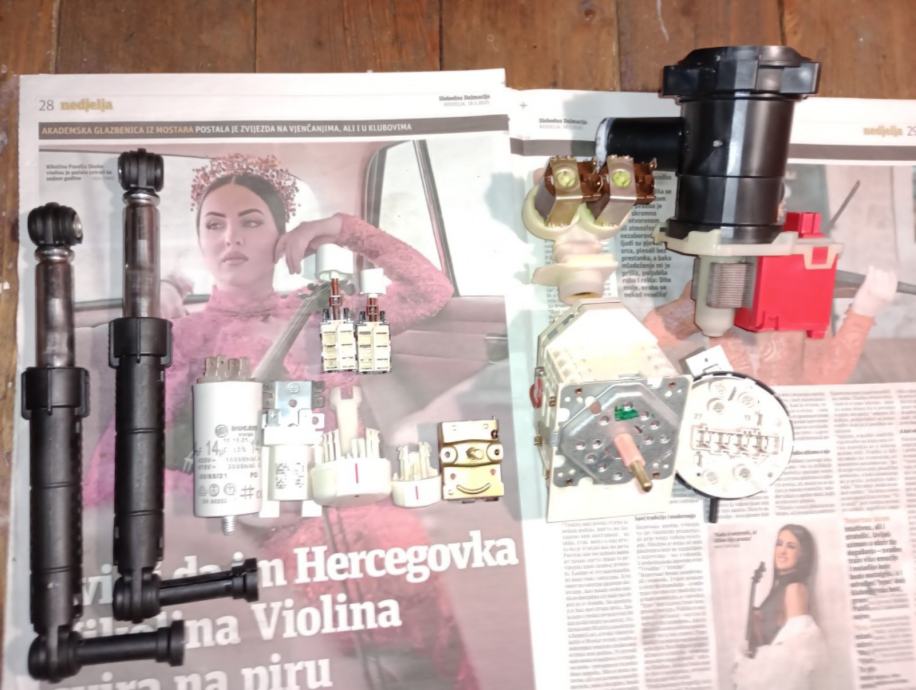 Prodajem komplet elektroniku od navedene perilice,prekidač paljenja/gašenja, termostat, programator,ventil napajanja hladnom vodom,pumpu za pražnjenje bubnja, električni razdjelnik potrošača + amortizere bubnja.