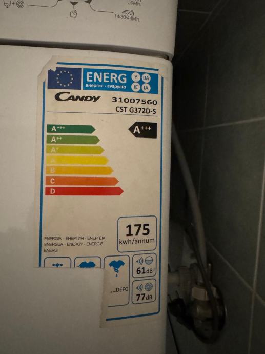 Radi se o modelu Candy CST G372D-S (7 kg, 1200 okr/min, A+++).