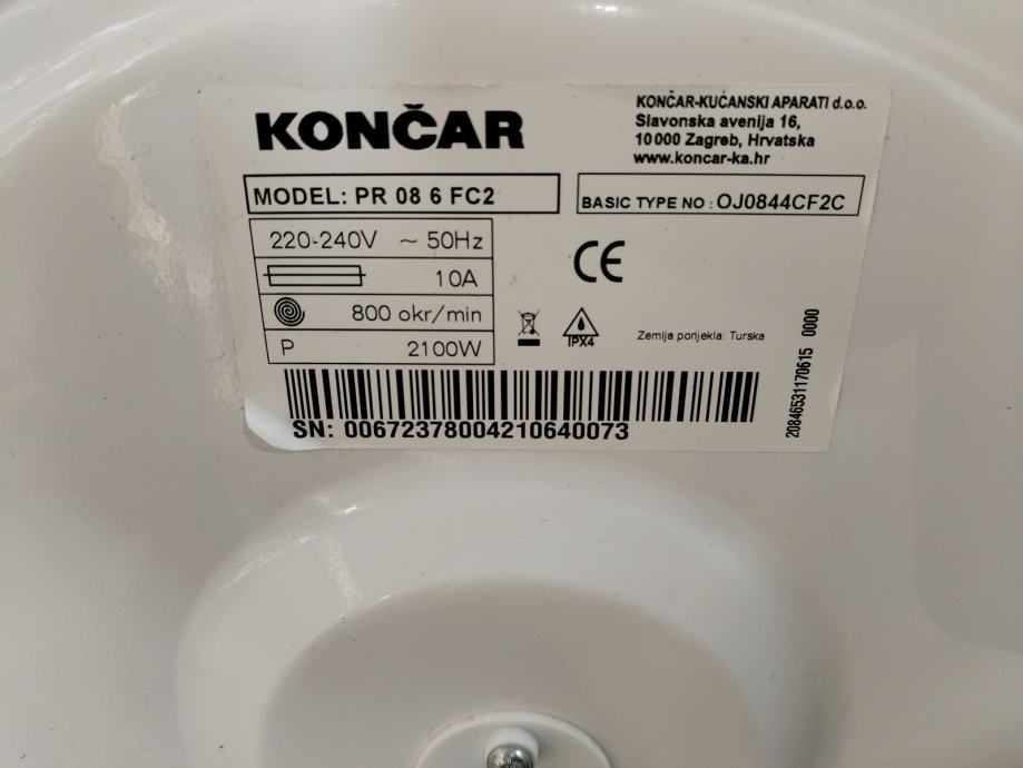 Perilica rublja Končar potpuno ispravna. Mirna i tiha u radu. Očišćena i dezinfecirana. Garancija na ispravnost.