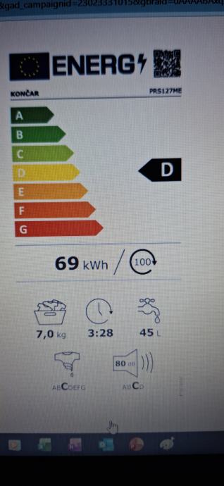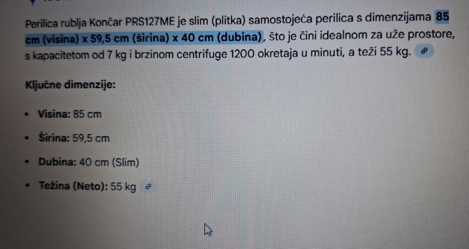 Prodajem perilicu rublja Končar PRS127ME, visina 85 cm , širina 59,5 cm, dubina 40 cm.
