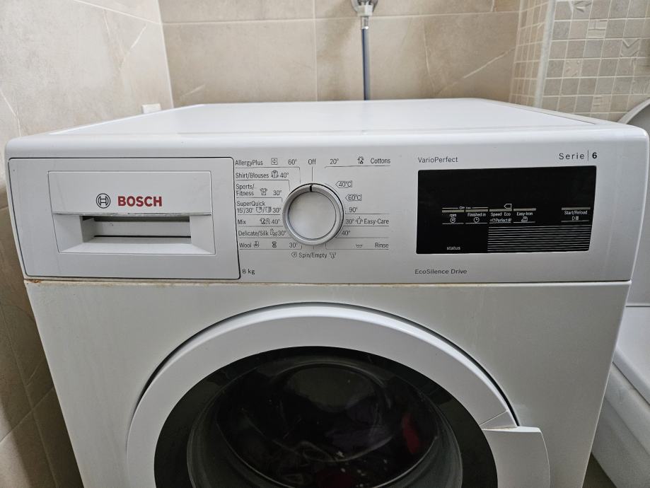Prodajem Bosch perilicu rublja u funkcionalnom stanju. Perilica ima standardne programe pranja, uključujući pamuk, sintetiku i druge opcije. Radi se o Bosch Seriji 6 modelu sa EcoSilence Drive motorom perilica rublja BOSCH WAT24360BY ima dugi životni vijek. Kapacitet pranja: 1-8 kg, 1200 o/min. VarioPerfect programi su vremenski skraćeni ili optimizirani u potrošnji za odlične rezultate pranja. TouchControl tipke, EcoPerfect, SpeedPerfect, biranje okretaja centrifuge, Vario bubanj za nježnije i intenzivnije pranje, AntiVibration Design tiši i stabilniji stroj, Protočni senzor za optimalnu potrošnju vode. Ostale karakteristike: ActiveWater ekološko upravljanje potrošnje vode, višestruka zaštita od izljevanja vode, 3D-AquaSpar-sistem, količinska automatika Fuzzy, potpuno elektronsko podesivanje sa regulatorom za sve programe, temperature i posebne programe, prikaz predoziranja, sistem za prepoznavanje pjene, kontrola neravnoteže bubnja, zaključavanje opcija pred djecom, zvučni signal na kraju programa.