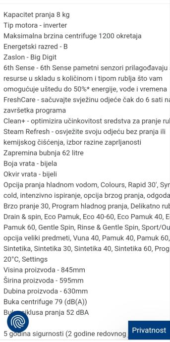 Prodajem perilicu rublja Whirlpool FFB8258WVEE, gotovo novu, kupljenu u rujnu 2024. Malo korištena ovih 10 mjeseci. Garancija 5 godina.