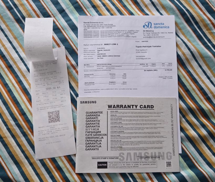 Potpuno ispravna, kupljena u "Santa Domenici" 03.10.2022.god., 9 kg rublja, 1400 okr./min., opcija "add wash" - dodavanje rublja tijekom pranja, d 65 cm, š 60 cm, v 85 cm, en. klasa D, mrvica hrđe iznad bubnja (vidljivo na slici), cijena 180 eura, nazvati mob. 0915455690.