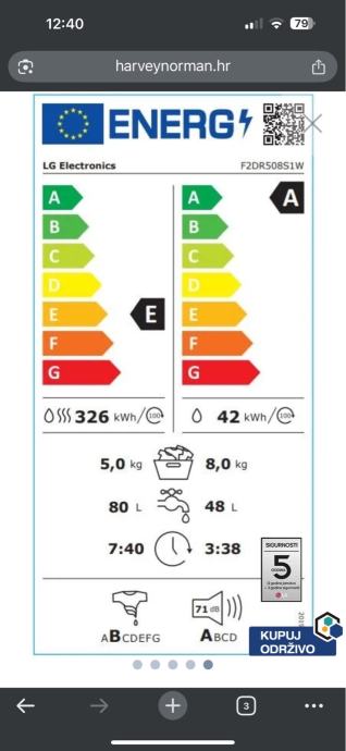 Prodajem rabljenu perilicu sušilicu LG model f2dr508s1w bijele boje s modernim dizajnom. Uređaj je energetskog razreda A za pranje i E za sušenje, s kapacitetom od 8 kg za sušenje i 5 kg za pranje. Dolazi s 5 godina jamstva i ima praktičnu ladicu za deterdžent te jasan digitalni zaslon za jednostavno upravljanje.