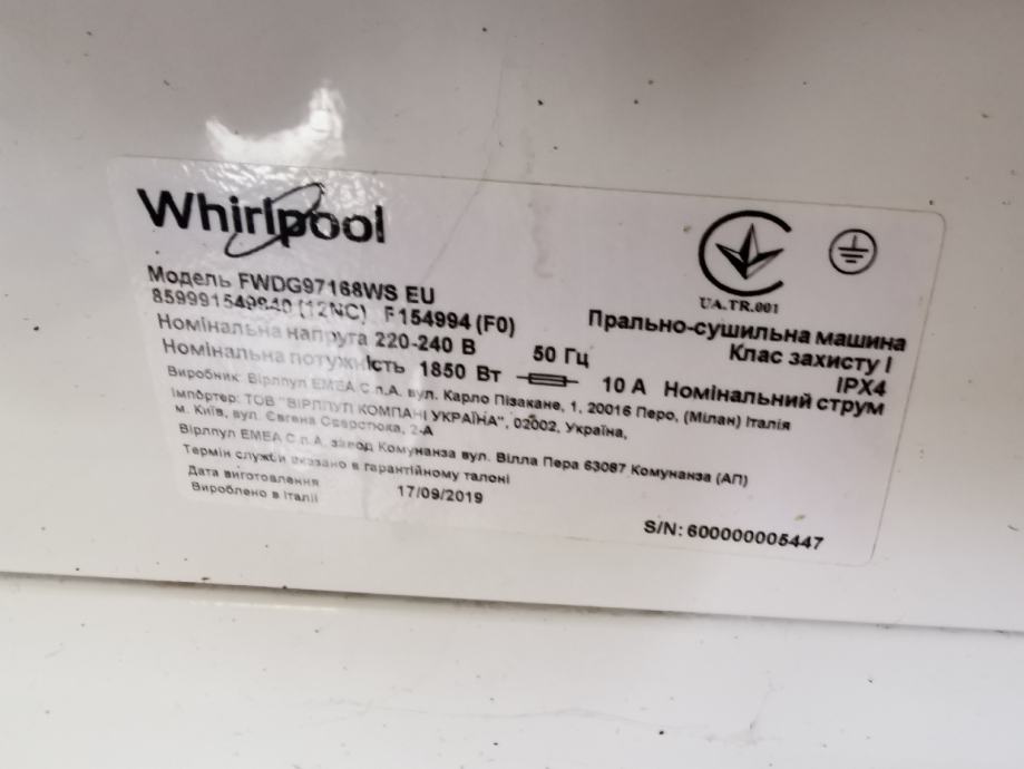 Whirlpool samostojeća perilica-sušilica rublja: 9 kg - FWDG97168WS EU