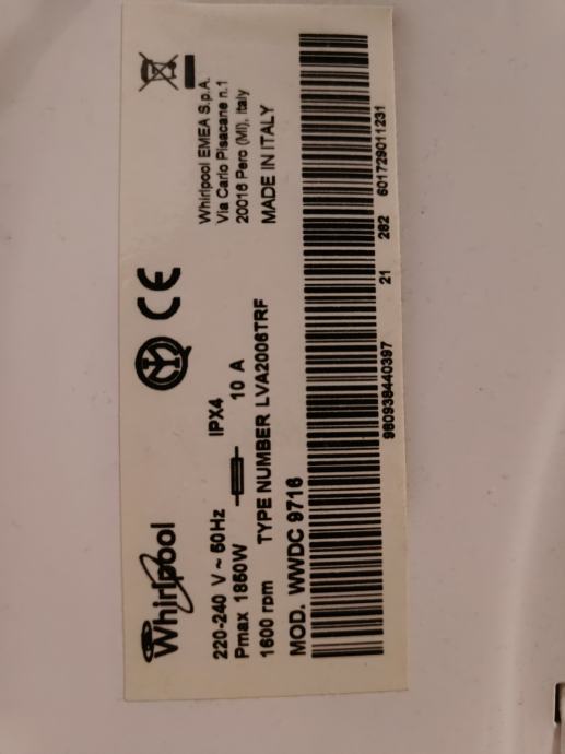 Perilica sušilica Whirlpool ispravna ali se čuje ležaj bubnja na centrifugi zato je cijena 50 eura.