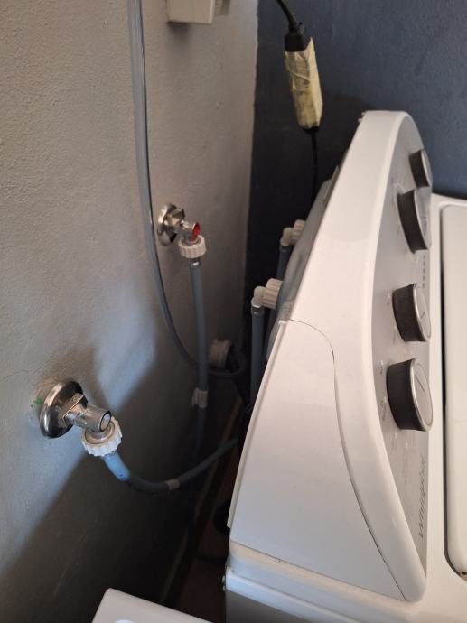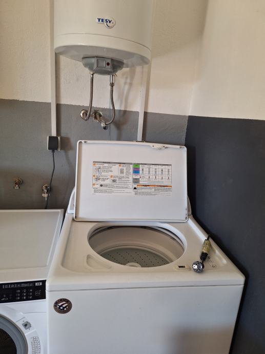 U odličnom stanju. Perilica vuče vruću vodu direktno iz bojlera. Odlična za pranje velikih popluna i deka kao i za velike obitelji sa puno šarenog rublja.