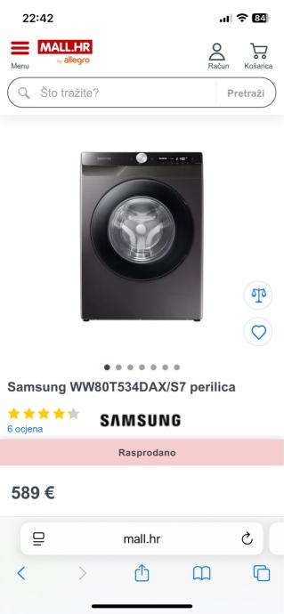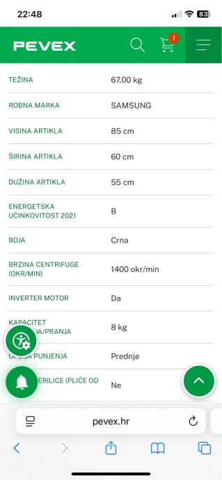Prodajem Samsung perilicu kapaciteta 8 kg. Ocuvana i malo koristena. Kupljena u lipnju 2022. Originalna cijena 590 eura. Nikad se nije kvarila. Posjeduje wireless opcije paljenja i gasenja na daljinu te automatskih dozatora deterdzenta i omeksivaca. Modernog izgleda sive boje. Razlog prodaje preseljenje, prodajem u manje od pola cijene.