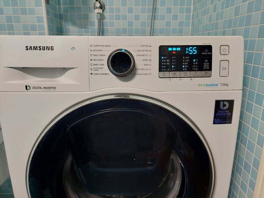Samsung perilica rublja WW70K5410UW. • Energetska klasa: A+++ • Kapacitet: 7 kg • Broj okretaja: 1400 • Karakteristike: Eco Bubble tehnologija- novi energetski učinkovit način pranja uz pomoć pjene, omogućuje uštedu energije i do 70 %. Veliki LED displej u boji. Dijamantni bubanj (nježan prema odjeći, tvrdokoran prema mrljama). Bubble Soak- specijalizirana opcija za uklanjanje tvrdokornih mrlja. Digitalni inverter motor(10 godina garancije!), motor bez četkica,energetski učinkovit i tih u radu. Smart Check (Pametna provjera putem mobilnog uređaja) otkriva poteškoće umjesto vas. • Kontrola napona: Štiti perilicu od velikih naponskih skokova. • Dimenzije (VxŠxD): 85x60x55 cm