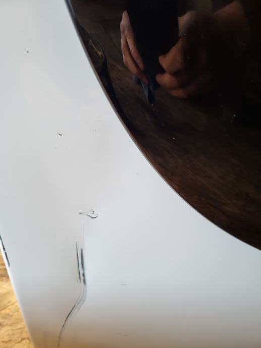 Ima oštećenje na prednjem dijelu i malo hrđe ispod posude za prašak.