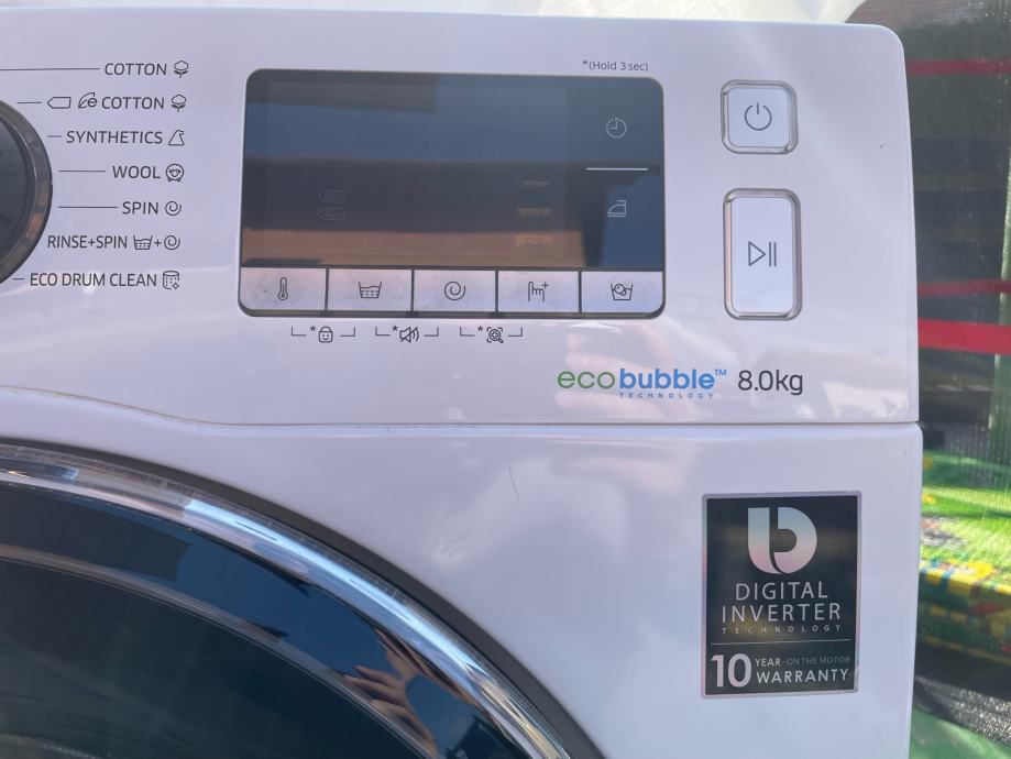Samsung ECO Bubble 8kg perilica rublja, kupljena 2019 godine, isteklo jamstvo od 5 godina, do sada se nije kvarila niti je bila popravljana.