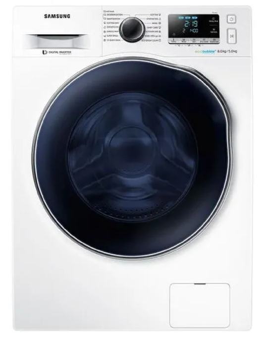 Samsung WD6000J (WD80J6410AW) perilica-sušilica ima kapacitet pranja 8 kg, a sušenja 6 kg, 1400 okretaja centrifuge. Spada u energetski razred A. Ima tehnologiju Air Wash za čišćenje i mirisanje odjeće, vrućim zrakom. Ima funkciju Smart Check koja prepoznaje problem i njegov uzrok, te nudi rješenje. Odlikuje ju dijamantni oblik bubnja. Za učinkovito pranje na niskim temperaturama brine tehnologija Eco Bubble